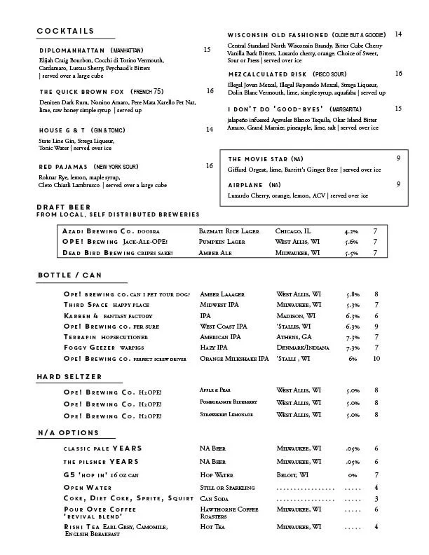 Our Seasonal Menu Changes Often,
